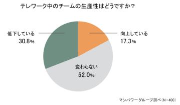 マンパワーグループが 20 代~50 代の管理職の男女 400 名を対象に、テレワークでのコミュニケーションやツールについて実感していることについて調査を実施。