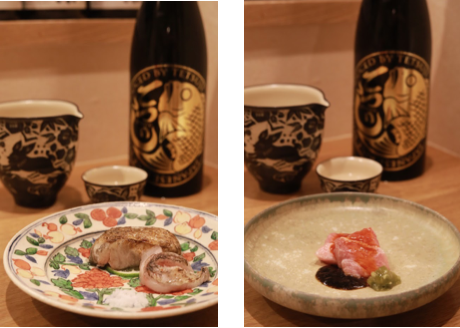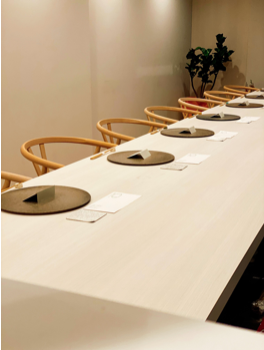 表の鮮魚店の活気ある雰囲気とは対象的に、白基調の洗練された空間で、絶品のイノベーティブ懐石を楽しむことができます。