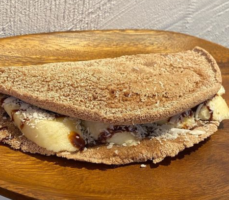 「ベージュ」とは、タピオカを焼いて、フルーツや肉などを巻いて食べるブラジル料理。