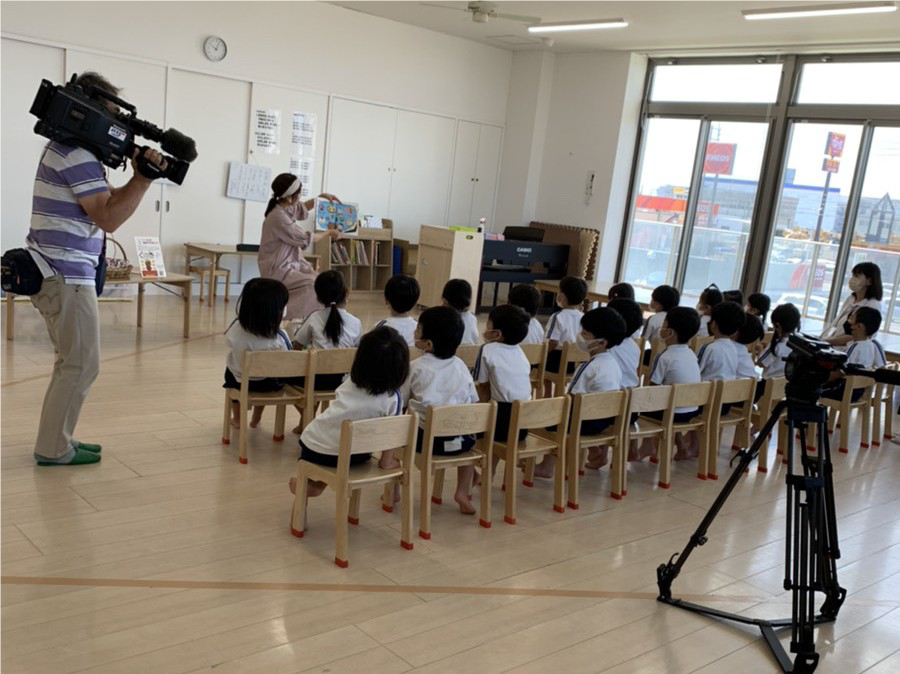 ⼦供たちに、コロナ禍をくーたんのようにポジティブに乗り切ってほしいと、地域の認定こども園「とっとりまなびや園」にて、年中クラスの⼦供たちへの読み聞かせ会を開催した。