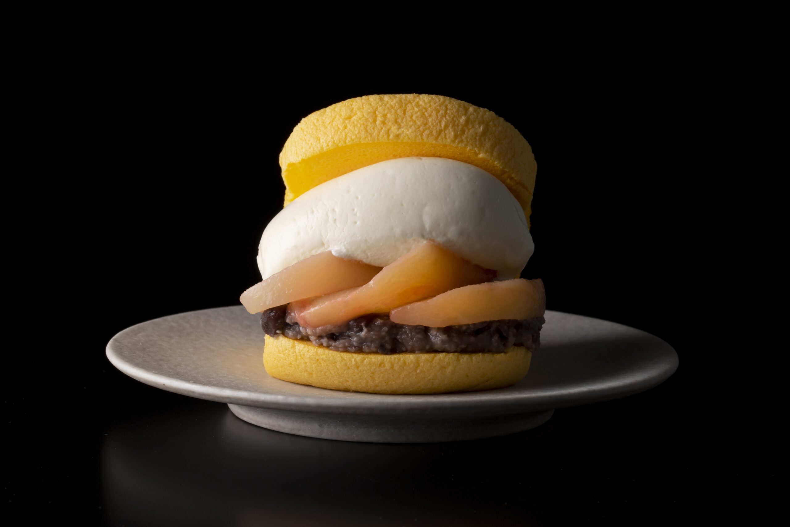 ふわとろ新食感のパンからはみ出るほどの生クリームとこだわりの桃を使った、和スイーツでは珍しいはみ出るスイーツ。全体的に見た目より見た目の印象とは裏腹に甘さ控え目、上品で優しい味わいなので大人から子どもまで美味しく楽しめる。