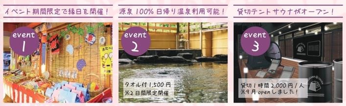 イベント期間中には、源泉 100%の日帰り温泉が 1500 円で利用可能。