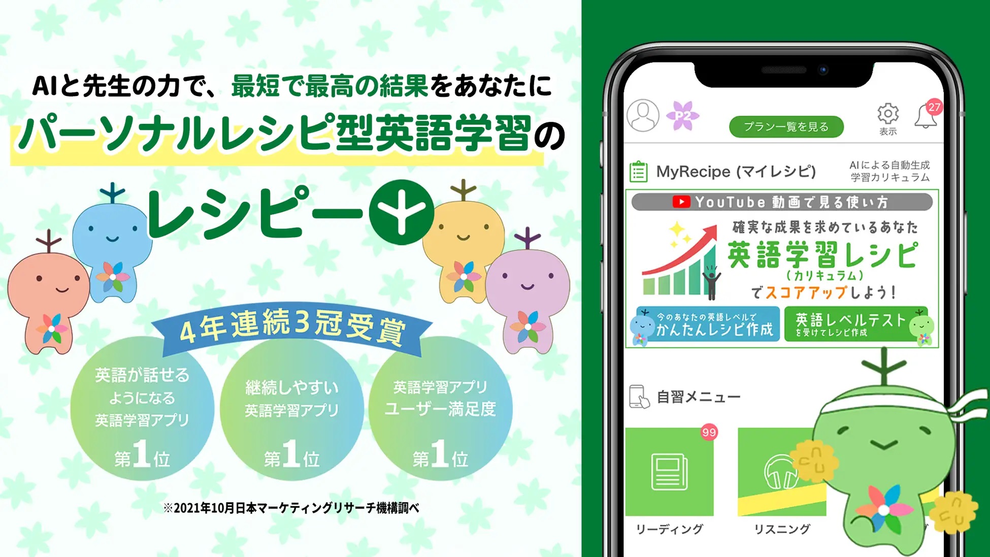 生徒の英語力アップのため、多くの学校が導入し始めているのが、英語学習アプリ「レシピ―」。「レシピ―」は、累計 200 万人が使う、ユーザー満足度 No.1、成果 No.1 の英語学習アプリ。2022 年夏に学校向けバージョンをリリースし、既に数十校が導入を決めている。