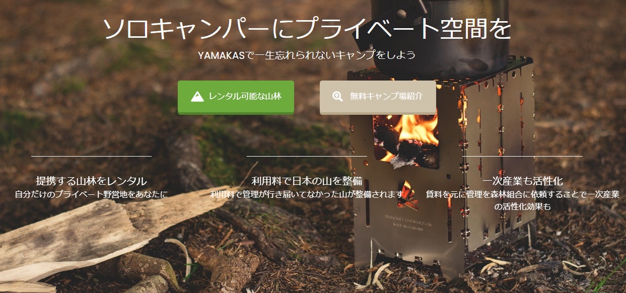 放置林をキャンパーに貸し出す山林シェアサービス「YAMAKAS」