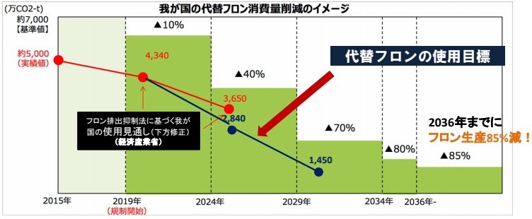■「キガリ改正」により、代替フロンの生産・消費量削減が義務化