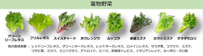 栽培可能な品種例 ※葉物野菜の他ハーブやエディブルフラワーも栽培可能