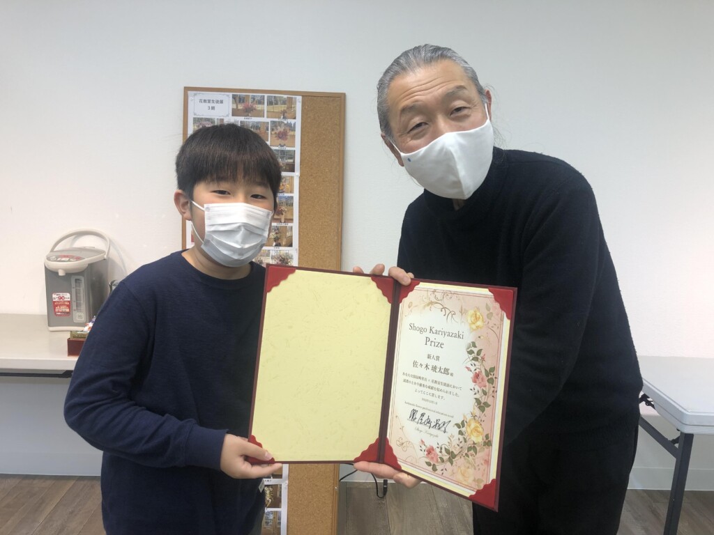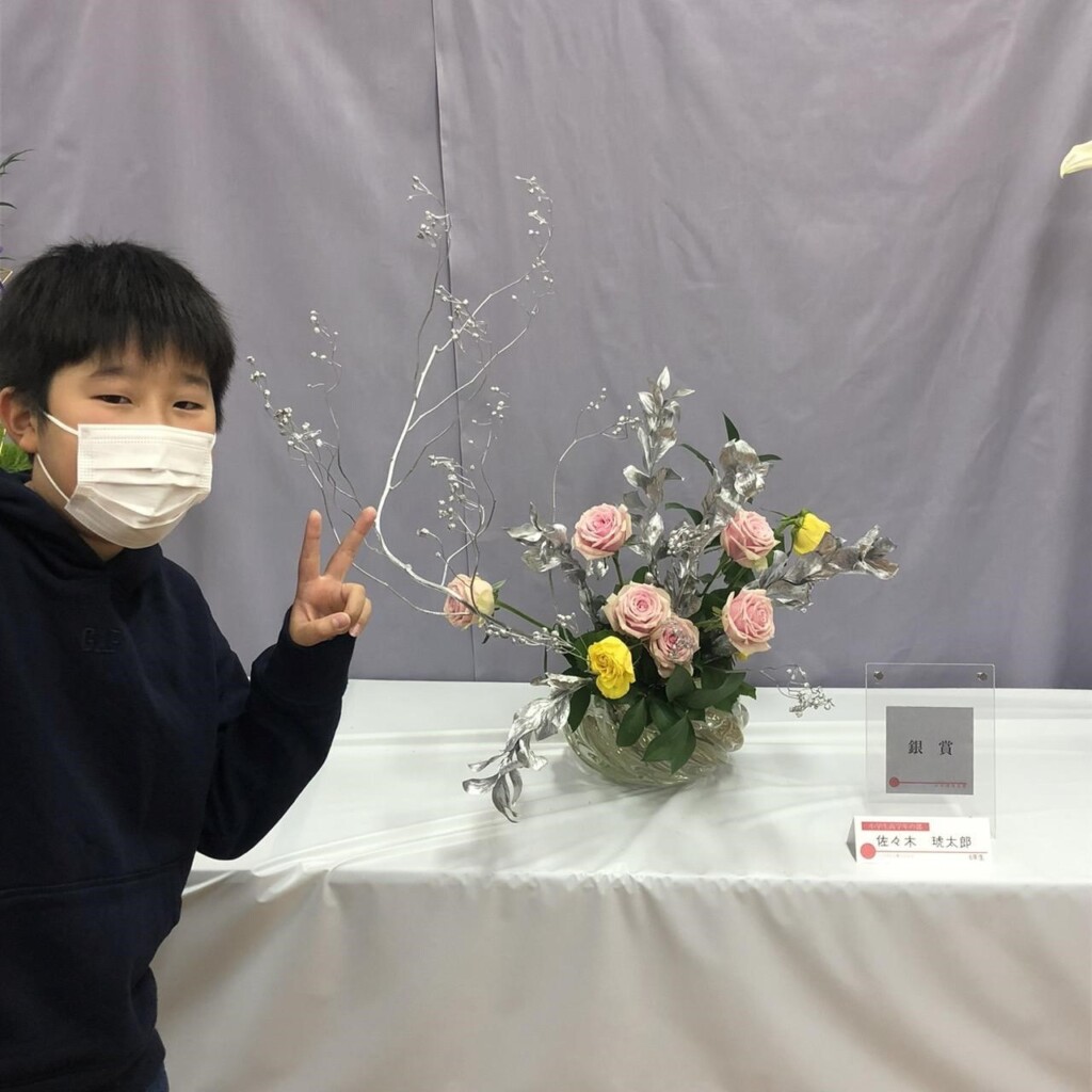 2022 年の「第 95 回全日本いけばなコンクール」小学生高学年の部で2位・銀賞に輝いたいけばな男子を輩出!