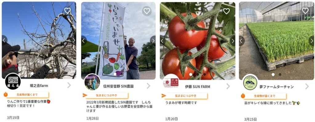 アルバム機能により、生産者の普段のストーリーを見ることができ、生産物がどのような人によってどのように生まれたのかを簡単に知ることができる。生産者のストーリーを最初に見ることで、推しの生産者を見つけることができる!