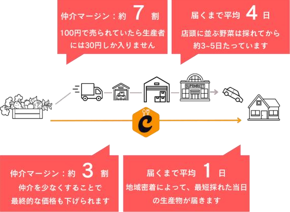 【“採れて平均 1 日”、“安く新鮮”を実現した販売システム】