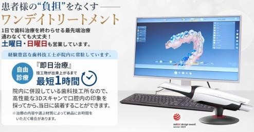 最短 1 日で歯の詰め物・被せ物を即日製作して治療を終わらせる「ワンデイトリートメント」。