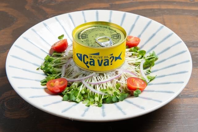 太打ちの十割蕎麦に鬼おろし・貝割れを敷き詰め、底をくり抜いたサヴァ缶を置いた見た目ユニークなマニア蕎麦。缶を持ち上げるとゴロっと鯖が出てくる。