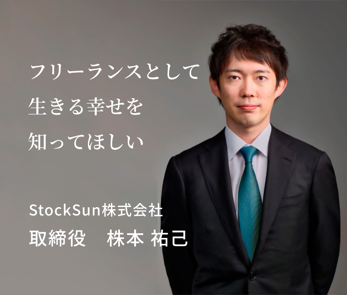 自身も実際にフリーランスを経験し、とても働きやすく、幸せを感じたという株本氏。「この働き方を、世の中にもっと広めて、自分と同じように幸せになる人を増やしたい!」との思いで、2017 年に StockSun を創業。