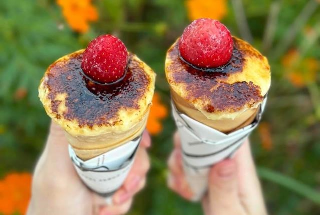 クレープとブリュレのハイブリッドで、パリパリとモチモチという 2 つの食感が楽しめる。