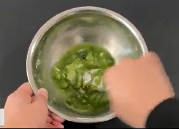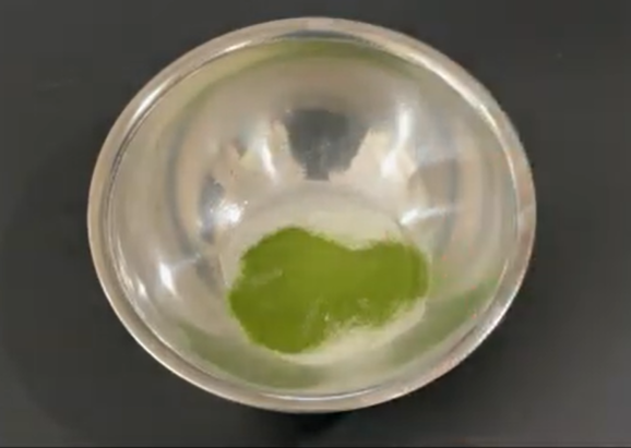 ①調理用ボウルにわらび餅の素と抹茶パウダーを入れる。