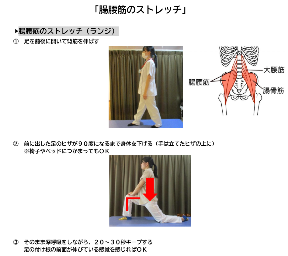 立った状態から行う『腸腰筋のストレッチ』(ランジ)