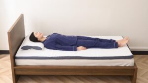 マットレスが柔らかすぎるとお腹を圧迫し、反対に硬すぎると反り腰になってしまう。「ドクタータフィ」の場合、高反発と低反発の二重構造、高反発の表面は少し珍しい凸凹の形状になっており、凸凹部分が骨盤の位置を安定させ、腰への負担を軽減してくれる。