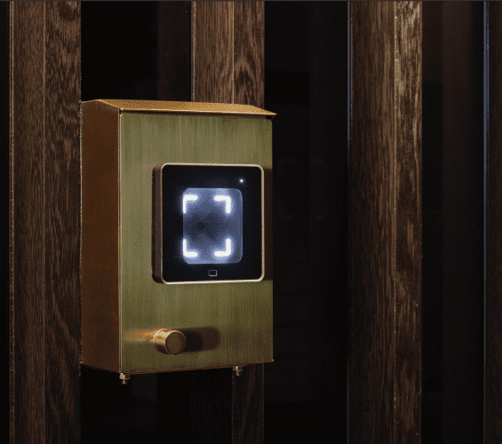入店の際に外観にある真鍮(しんちゅう)箱に会員権を翳すと開く仕組み。