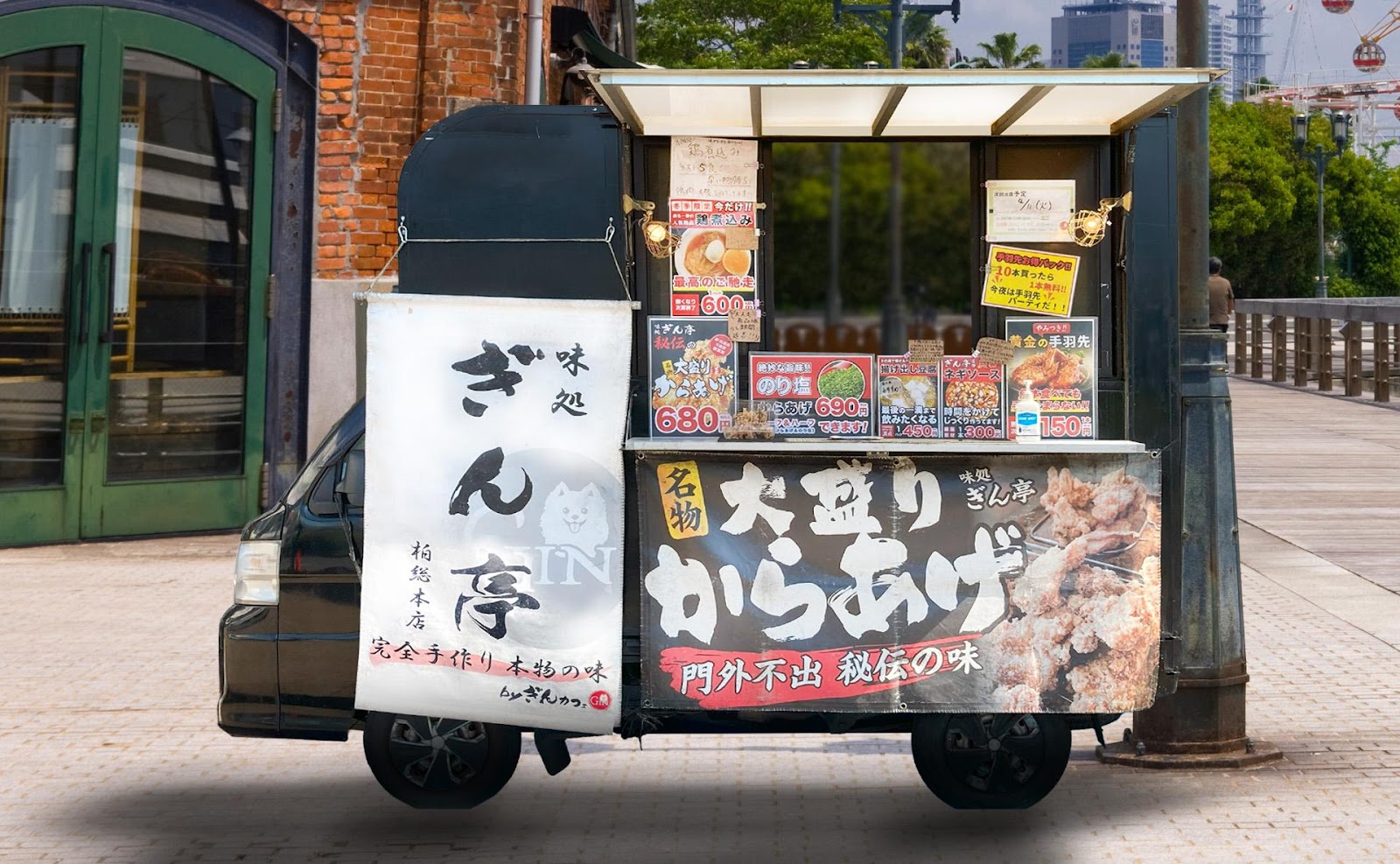 SNSで話題の大盛りからあげ店「味処ぎん亭」のキッチンカー。