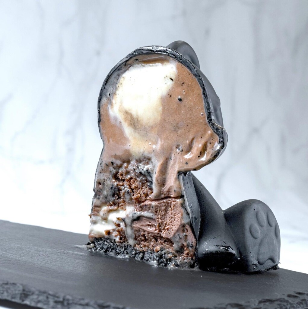 【何層にも重なった、唯一無二の技術で作られた熊型のケーキ】厳選された食材で作られた漆黒のケーキ「BLVCK TEDDY」(チョコ&チーズ)