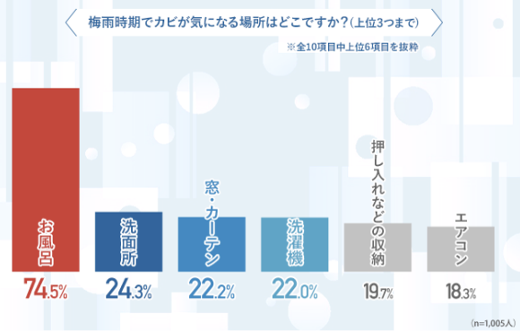 カビが気になる場所No.1は「お風呂場」(74.5%)