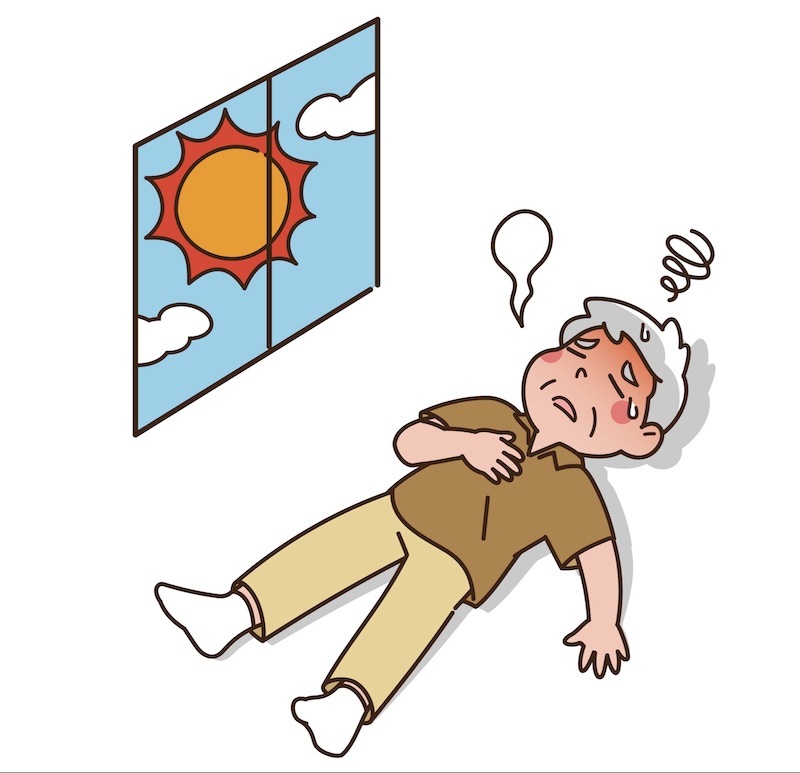 室内での熱中症では、頭痛がしたり、意識が遠のくといった頭部の症状や、食欲の低下や吐き気など消化器系に不調を感じやすいのが特徴。