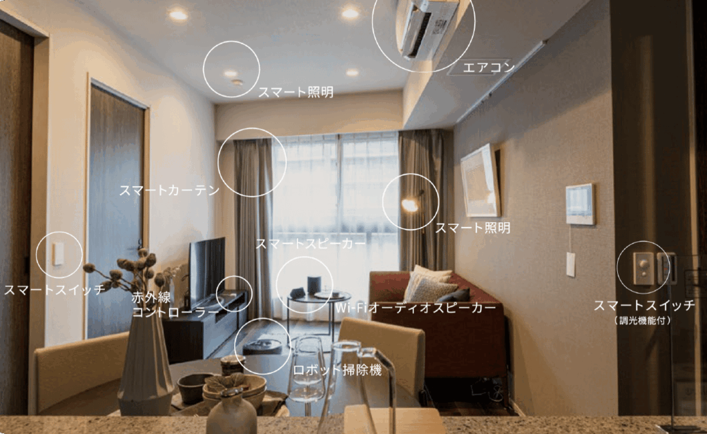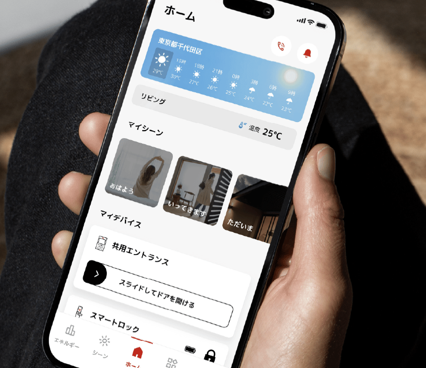 たとえば、子どもが帰宅する時間にあわせ玄関の鍵を開けたり、スマートフォンから空調の温度を調整、日が落ちてきたら家中のカーテンやシャッターを自動で閉めることができる。