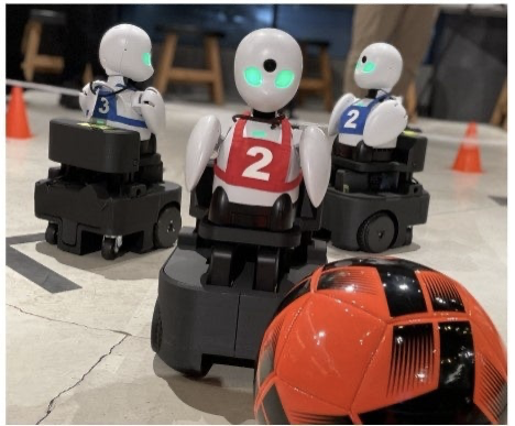 モーターで動くカートの上に本体を乗せた「OriHime Cart」を使用し、サッカーをプレイする。