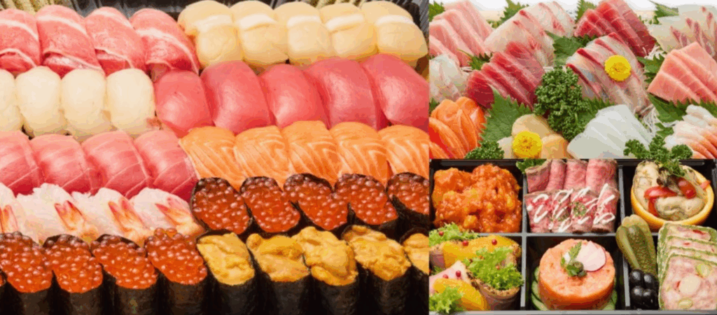 「大トロ・中トロ入り自慢の寿司盛り 50 貫」や、綿半ブランドの「SHIN ルビー牛 3 種盛り」、綿半シェフ監修の「冷製オードブル Bijoux」など、厳選食材を使った多彩なメニューをご用意しました。