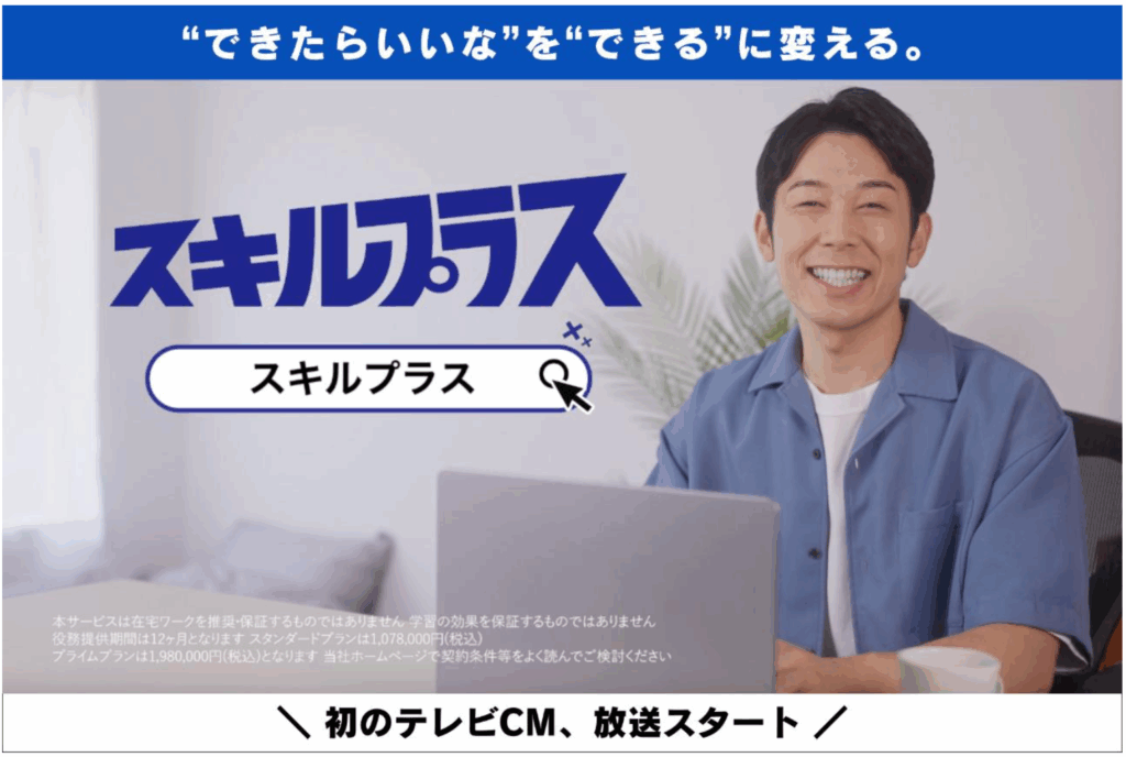 Web マーケティングや SNS・広告運用、生成 AI、セールス、デザインなど、実践的なスキルを効率よく習得できる次世代型のオンライン教育プログラム「スキルプラス」を提供するアドネス株式会社(本社:東京都新宿区四谷、代表取締役社長:三上功太)は、2025 年 8 月 18 日(月)より、同サービスとしては初となるテレビ CM の放送を開始いたします。