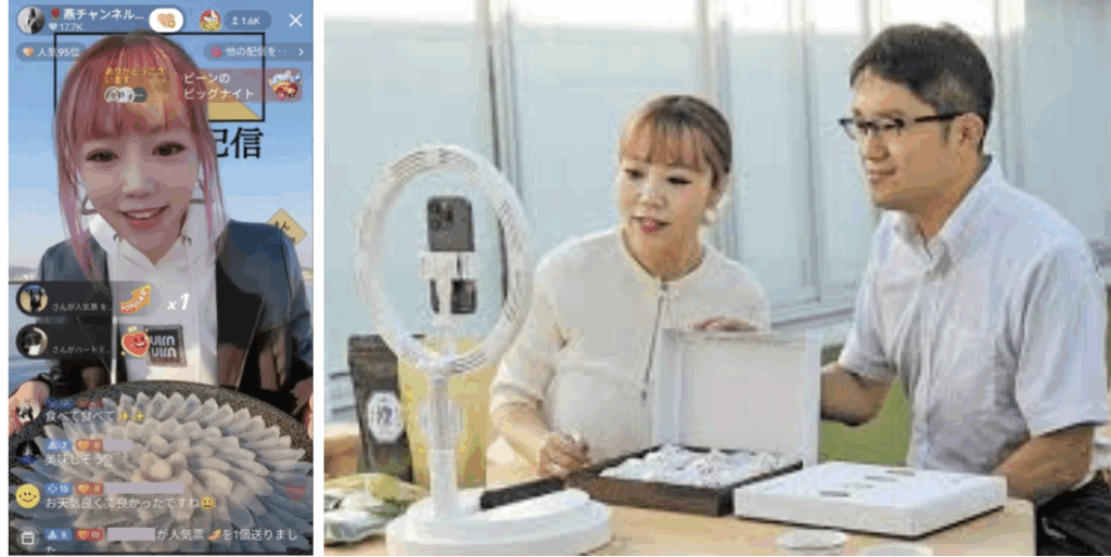 現地企業の人々とライブ配信を実施。毎回、商品は完売しており、“地方再生”を実現している!