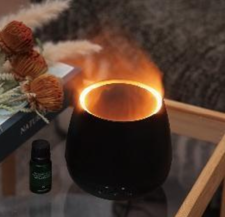 オレンジに揺らぐライト機能も有り、ミスト量は2パターン選べます。エッセンシャルオイル使用可能。