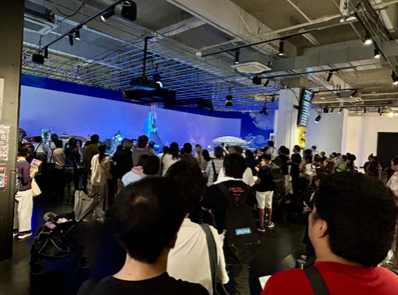 発射基地の周りには、打ち上げを見守る人や宇宙旅行に旅立つ人々たちの様子も再現している!