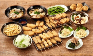 串カツ牛、串カツ豚、レンコン、玉ネギ、ハムカツ、アジフライ、タコウィンナー、うずら