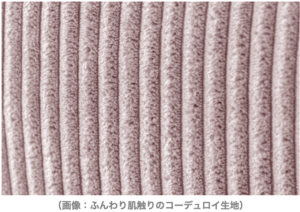 また、ふんわりとした優しい肌触りのコーデュロイ生地を採用しており、やわらかな起毛が肌に心地よく寄り添い、触れるたびにぬくもりを感じられます。