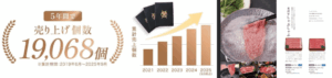 5 年間で 19,068 個販売と、着実に伸長! 大正時代創業の米沢牛専門店自慢の精肉や、直営レストランのシェフ監修の米沢牛ハンバーグ・米沢牛レトルトなどを選ぶことができる人気商品です。