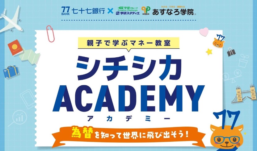 株式会社 学研ホールディングス(東京・品川/代表取締役社長:宮原博昭)のグループ会社、株式会社 学研スタディエ(さいたま市/代表取締役社長:亀谷眞宏)が展開する、宮城県の総合進学塾 あすなろ学院は、令和7年11月29日(土)に、七十七銀行様とのコラボ企画イベント「親子で学ぶマネー教室 シチシカACADEMY 為替を知って世界に飛び出そう!」を開催いたします。