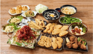 ■串カツ(6 種) 串カツ牛、串カツ豚、レンコン、玉ネギ、ハムカツ、アスパラ ■サイドメニュー キャベツ、枝豆、梅きゅうり、ポテトサラダ、チューリップから揚げ、ポテトフライ、マカロニサラダカレー風味、ちりとり鍋、(選べる〆付き) ■デザート ミニデザート |