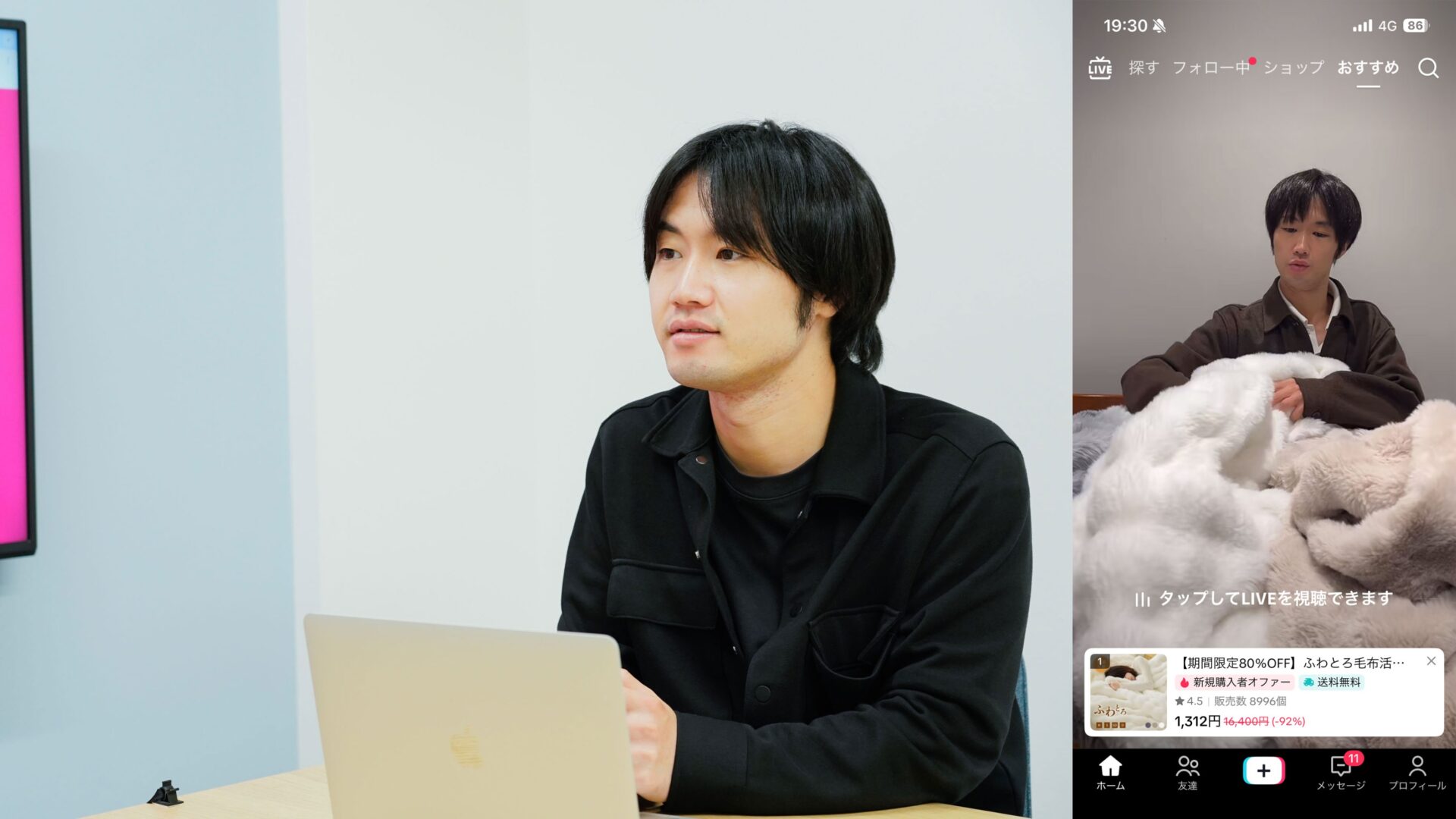 しかし、そんな彼が社員の冷ややかな視線の中、週2回ライブコマースに取り組み、実績を達成したことで空気が変わりました。