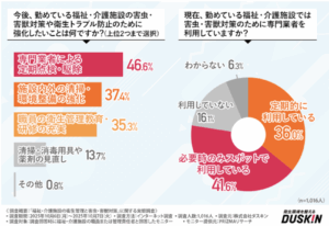さらに、効果やコストに加えて、定期報告・記録の有無を重視する傾向から、福祉・介護施設側と専門業者の“協働関係”への期待も高まっています。