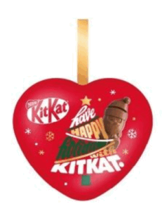 ツリーに飾ることもできるコロンとしたハート型のオーナメント缶。中に入っているチョコレートは可愛らしいサンタさんの形をした特別なキットカットです。ギフトにもおすすめ。