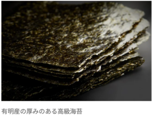 数ある海苔の中でも、柔らかい一番摘みの有明産海苔をていねいに焼き上げた最高級海苔「松」ランク。その中でも厚みがあって口どけが良く、味・香りが巻き寿司に適した「海苔」を使用しています 。作り置きでは表現できないパリパリ感を、巻きたてを提供する事で実現しています 。