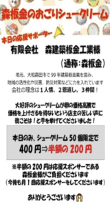 大好評のシュークリームが、卵の高騰などの物価高騰で価格を上げざるを得ないという店主の苦しい声に対し 、森建築板金工業(通称:森板金)が応援サポーターとして手を挙げました 。