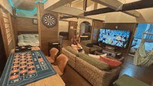 これは400坪の土地で営業する「住民や社員が利用できるカフェを併設した自動車整備工場」