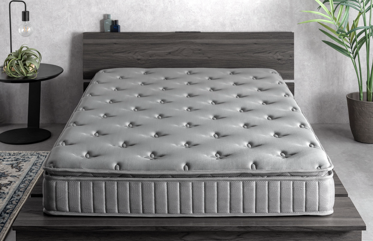 本製品は、ポケットコイルマットレスにピロートップを組み合わせた仕様で、ピロートップのふっくらとしたクッション性が寝心地の質を一段と高めます。