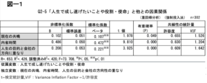 調査の結果、統計的な分析(重回帰分析)をすると、「人生で成し遂げたい役割・使命」は「現在(所属組織へ)の共鳴」×「内省時間」×「人生の目的と会社の方向に重なり」という回帰式となり、この3つの要素が重なると、従業員は人生の役割や使命が発見しやすくなるということがわかりました。