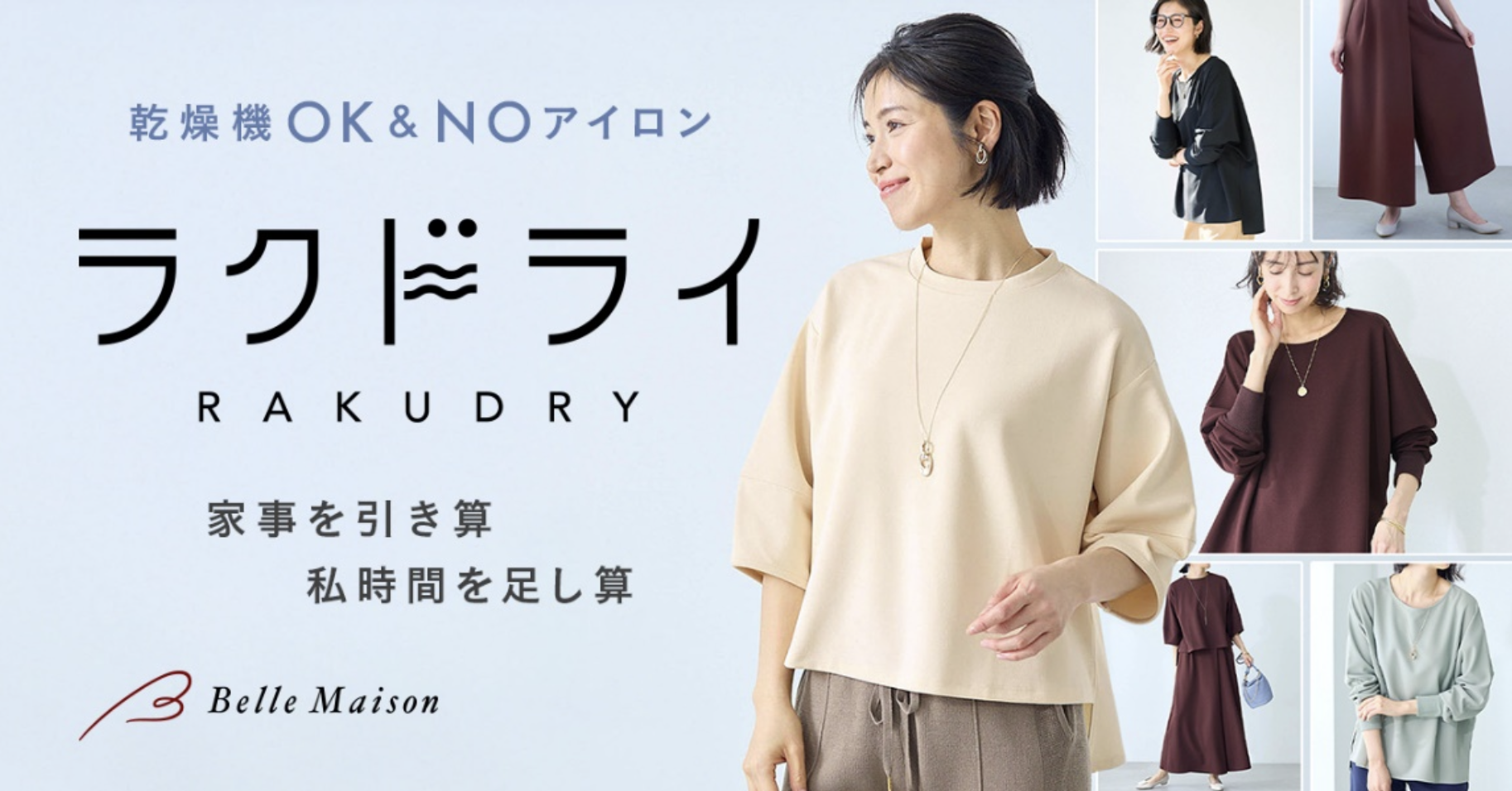 おしゃれ着なのに、乾燥機を使用してもシワがつきにくいレディースブランド「ラクドライ」。